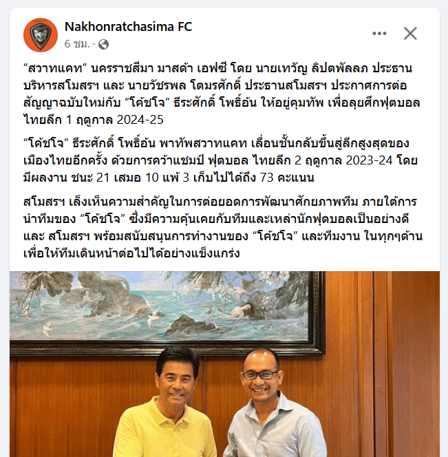 สวาทแคทต่อสัญญาโค้ชโจ ลุยต่อไทยลีก ฤดูกาลหน้า ปี 2024/25