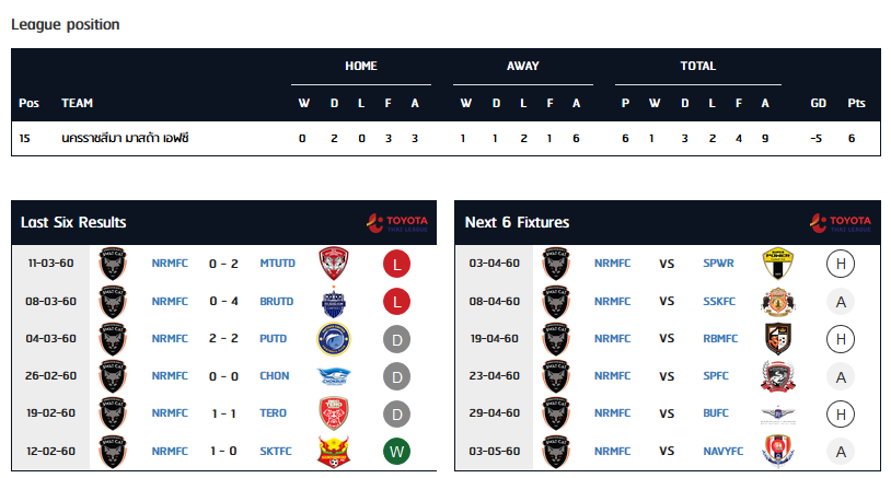โปรแกรมการแข่งขันและตารางคะแนนไทยลีก 2017 Click ที่นี่